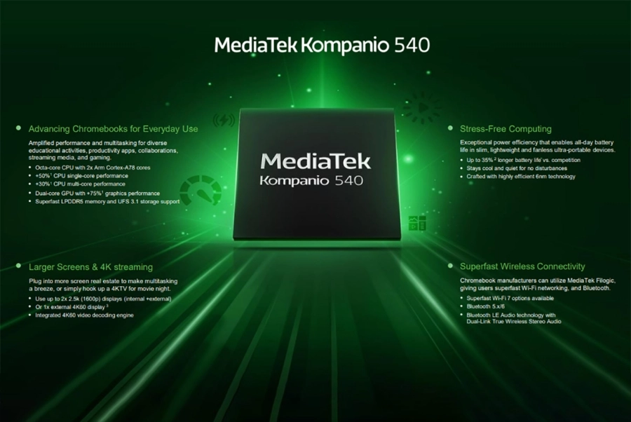 Các mẫu Chromebook sử dụng chip MediaTek Kompanio 540 sẽ có mặt trên thị trường từ tháng 1/2026.