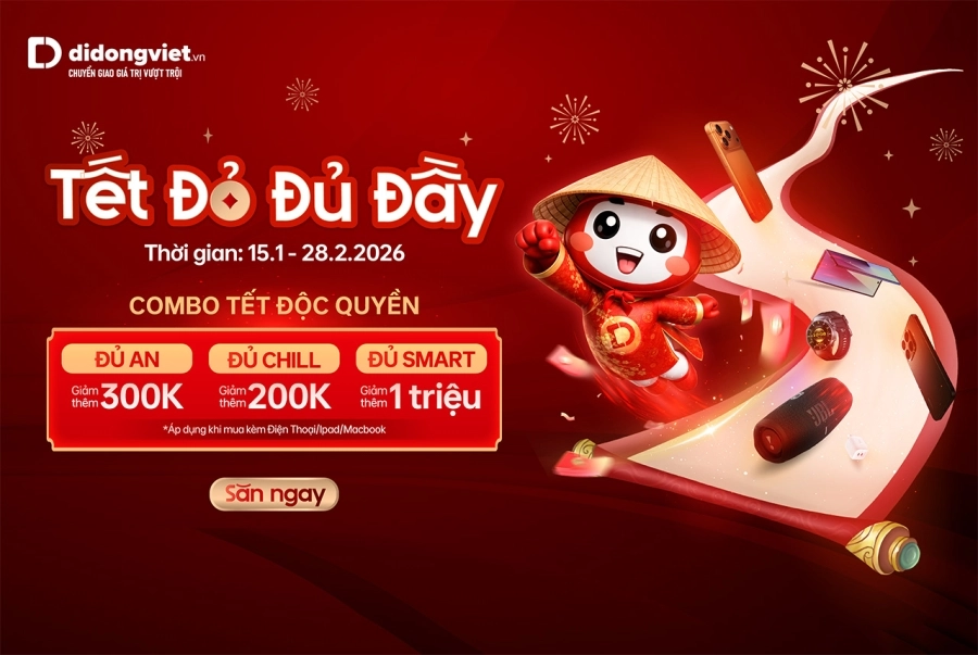 Độc giả có nhu cầu tham khảo chương trình “Tết đỏ đủ đầy” hoặc mua sắm các sản phẩm di động, đồ gia dụng thông minh, xe máy điện có thể tìm hiểu thêm tại website: didongviet.vn, hoặc gọi tổng đài 1800.6018 (miễn phí).