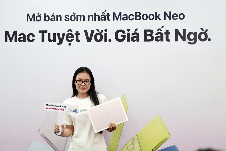 “Trong ngày đầu mở bán, lượng khách đến nhận máy và trải nghiệm MacBook Neo tại hệ thống tương đối tích cực, tập trung chủ yếu ở nhóm học sinh - sinh viên, phụ huynh và người dùng lần đầu chuyển sang MacBook. Khi mức giá cuối được đưa về khoảng hơn 12 triệu đồng, quyết định mua của khách hàng diễn ra nhanh hơn so với các dòng MacBook trước đây. Ngoài yếu tố giá, các chương trình như thu cũ - lên đời, ưu đãi dành riêng cho học sinh - sinh viên và cơ hội trúng iPhone 17e cũng góp phần thúc đẩy nhu cầu trong giai đoạn mở bán”, đại diện Di Động Việt chia sẻ.