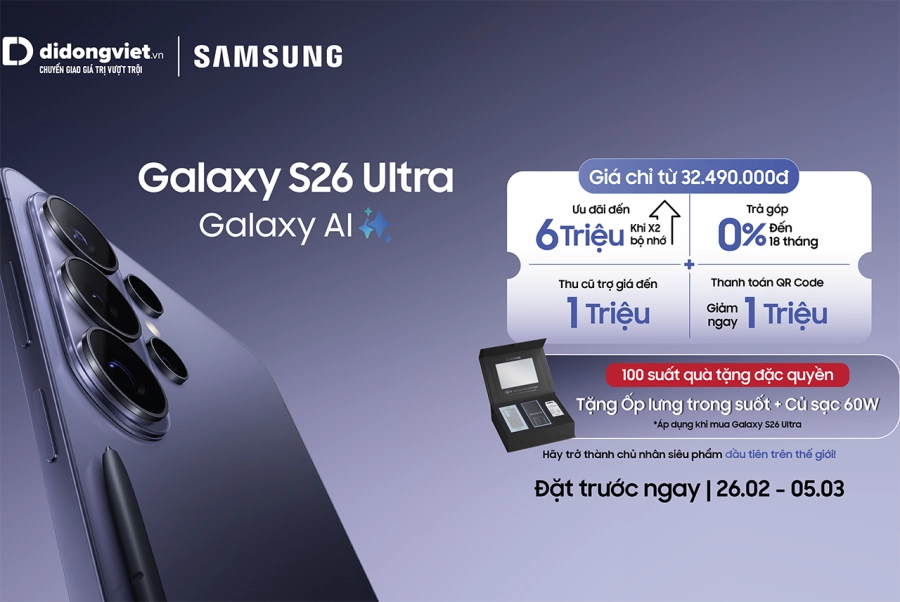 Độc giả có nhu cầu đặt trước Samsung Galaxy S26 series hoặc mua sắm các sản phẩm di động, đồ gia dụng thông minh, xe máy điện có thể tìm hiểu thêm tại website: didongviet.vn, hoặc gọi tổng đài 1800.6018 (miễn phí).