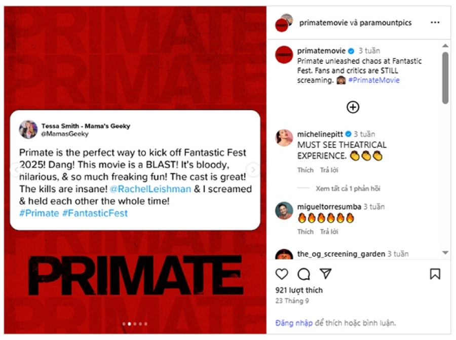 Đoạn trailer dài gần 3 phút lập tức gây ấn tượng mạnh với khán giả nhờ nhịp hành động căng thẳng, loạt khung hình rùng rợn và không khí nghẹt thở khi nhóm bạn phải đối diện với thú tính nguyên thủy của sinh vật từng được xem như một thành viên gia đình. Dù chưa hé lộ cảnh quay máu me nào, trailer của Linh Trưởng vẫn đủ khiến người hâm mộ dòng phim kinh dị - quái vật “đứng ngồi không yên”.