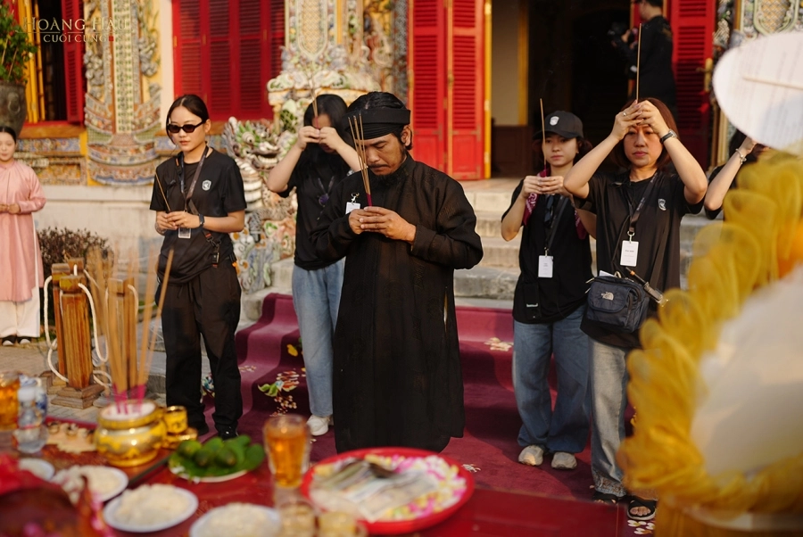 Trước ngày khai máy, đoàn làm phim “Hoàng Hậu Cuối Cùng” đã có buổi lễ viếng và dâng hương tại Thế Miếu - nơi thờ tự tôn nghiêm các vị vua triều Nguyễn từ thời lập nước. Tại buổi lễ, có sự tham gia của ông Hoàng Việt Trung, giám đốc TT Bảo tồn Di Tích Cố Đô Huế, ông Nguyễn Phước Hải Trung, PGĐ TT Bảo tồn di tích Cố Đô Huế cùng các đại diện sở, ban ngành khác… Ông Hoàng Việt Trung đã có những chia sẻ chân thành về dự án điện ảnh đặc biệt này: “Phim lịch sử luôn rất khó, đặc biệt trong bối cảnh nghiên cứu và phối hợp còn nhiều hạn chế, nên chắc chắn sẽ có những thiếu sót ngoài ý muốn. Tôi tin rằng với tâm huyết của ê-kíp và niềm đam mê điện ảnh của nhà sản xuất, đạo diễn, chúng ta có thể tạo nên một bộ phim thành công—đáp ứng kỳ vọng chính đáng của cả ê-kíp lẫn khán giả. Mục tiêu cuối cùng không chỉ là một bộ phim, mà là kể được câu chuyện văn hoá Huế một cách trọn vẹn, chứ không đơn thuần vì mục đích thương mại. Nếu bộ phim thành công, đó không chỉ là thành quả của riêng ê-kíp, mà còn là một dấu ấn mới cho Thành phố Huế trên màn ảnh.”
