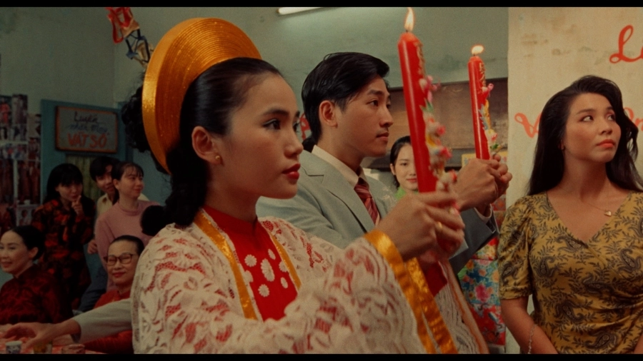 Phân đoạn đám cưới của Văn Quân và Tường Vy tái hiện một khung cảnh đầy hoài niệm, hệt như ta đang lật giở cuốn album được chụp trong ngày vui của bố mẹ khi xưa. Hoá ra đám cưới thời bao cấp lại giản dị mà đẹp đến vậy. Một đám rước dâu thật dài, nối đuôi nhau trên cầu thang cư xá cũ. Những lồng đèn giấy đỏ, khung giấy chữ hỷ dán dọc hành lang dẫn vào căn hộ của đôi vợ chồng mới. Căn bếp của Kỳ Nam rộn ràng tiếng nồi chảo, tiếng người trò chuyện, thoăn thoắt những bàn tay dọn những món ngon nóng hổi lên đĩa. Bàn tiệc được sắp trên sân thượng rộng thoáng của cư xá, cổng hoa và xung quanh kết bằng lá dừa, trang trí hoa tươi. Bàn lễ chất đầy những món quà gói giấy đỏ hoạ tiết và chiếc bánh cưới xinh xắn viết tên đôi uyên ương. Một khung cảnh xinh đẹp, gần gũi và đầy hoài niệm. Một ngày vui của cả khu cư xá chứ không chỉ riêng hai gia đình vừa kết tình thông gia. Mỗi người một việc, ai cũng tất bật, và ai cũng giữ mãi nụ cười trên môi.