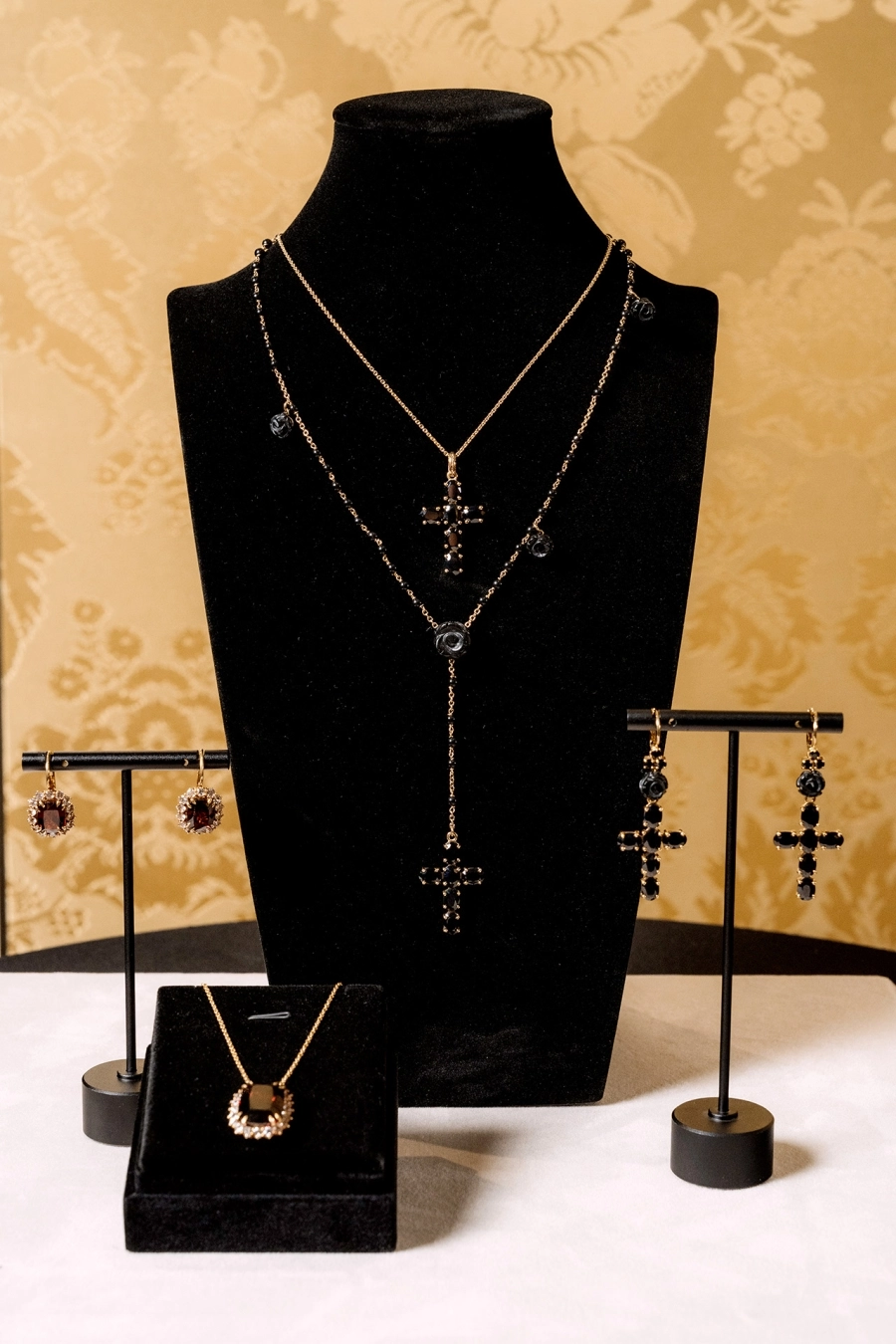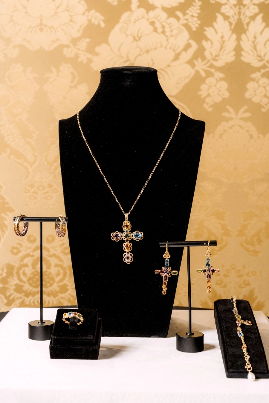 Không gian trưng bày của Dolce&Gabbana Fine Jewellery tại Việt Nam mang đậm tinh thần vintage Ý và phong cách sartorial, nơi mỗi tác phẩm được chế tác thủ công như một “haute couture” thu nhỏ, sử dụng vàng 18K, ngọc trai nước ngọt và đá quý thiên nhiên được tuyển chọn tỉ mỉ. Kỹ nghệ đặc trưng của thương hiệu – từ filigree, tráng men, khắc tay đến họa tiết maiolica và baroque – được thể hiện tinh xảo, đưa khách tham quan vào thế giới nghệ thuật trang sức đỉnh cao.