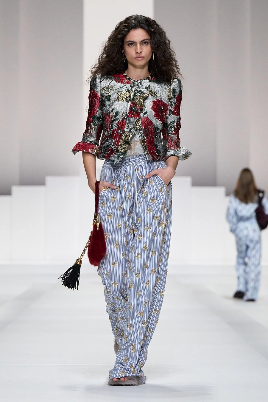 Bộ sưu tập PJ Obsession “Cảm Hứng Pyjama” tái hiện hình ảnh pyjama nam kinh điển với một biến tấu gợi cảm, hiện đại, đan xen nội y đen, chi tiết đính đá và đường cắt may sắc sảo. Ngôn ngữ thời trang mới này dịch chuyển linh hoạt giữa phong cách boudoir riêng tư và đời sống thành thị cởi mở, mang đậm dấu ấn tinh nghịch đặc trưng của Dolce & Gabbana.