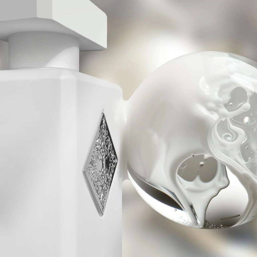 Khoác lên sắc trắng tinh khiết, Musk Therapy biểu trưng cho sự an nhiên. Viền ánh vàng kim nơi cổ chai tạo điểm nhấn sang trọng, phản chiếu tinh thần thanh thoát và cao quý.