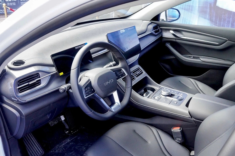 Khoang nội thất của BYD Seal 5 được thiết kế hiện đại, trang bị màn hình cảm ứng xoay 12,8 inch, hệ điều hành DiLink OS, kết nối Apple CarPlay/Android Auto, trợ lý giọng nói đa ngôn ngữ và hệ thống âm thanh 8 loa. Xe được trang bị 6 túi khí, camera 360 độ soi gầm, phanh tay điện tử Auto-Hold, cùng loạt công nghệ an toàn chủ động như TCS, HHC và VDC, mang lại trải nghiệm lái an toàn và tiện nghi cho người dùng.