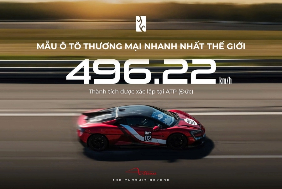 Thành tích này được thực hiện vào ngày 14/9/2025 với mẫu siêu xe YANGWANG U9 Xtreme, vượt qua kỷ lục trước đó của ô-tô điện và cả mức 490,484 km/h của mẫu xe xăng nhanh nhất, qua đó trở thành chiếc xe thương mại nhanh nhất thế giới. Cột mốc mang tính lịch sử này không chỉ khẳng định đỉnh cao kỹ thuật chế tạo, mà còn mở ra chuẩn mực mới cho kỷ nguyên di chuyển bằng năng lượng sạch: tốc độ và sức mạnh vượt trội đi kèm phát thải bằng không.